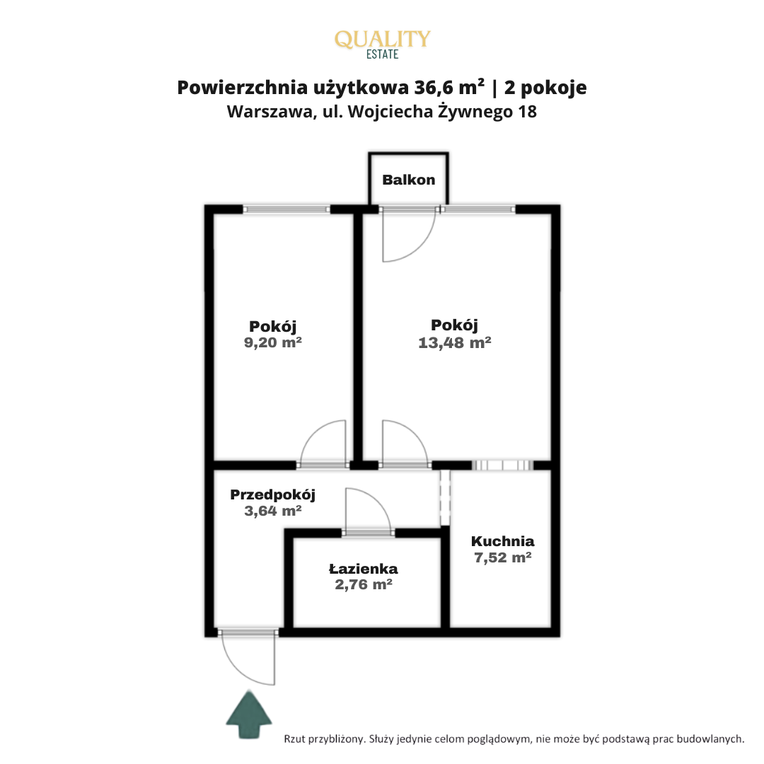 Mieszkanie przy ul. Wojciecha Żywnego 18 w Warszawie o powierzchni 36,6 m² to